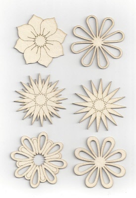 op=op bloemen en sterren chipboard 6cm -1,5mm dik 6 stuks