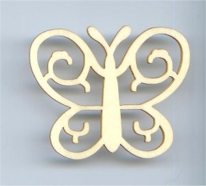 houten laser figuurtje, vlinder opengewerkt 6,5x5,5cm