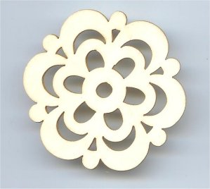 houten laser figuurtje, bloem rond opengewerkt 6,5cm