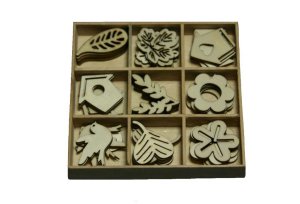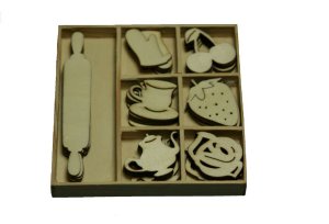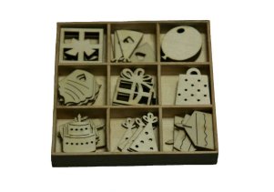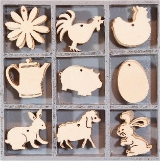 houten laser figuurtjes, box boerderij 2 9 x 5 stuks - ca 3cm