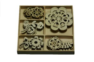 houten laser figuurtjes bloemen folklorisch 25 stuks
