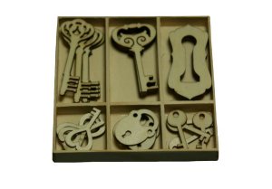 houten laser figuurtjes sleutels en sloten 30 stuks