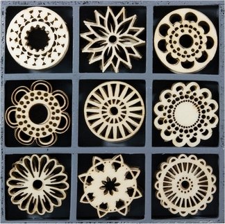 houten laserfiguurtjes, box fantasie cirkels 9x5stuks
